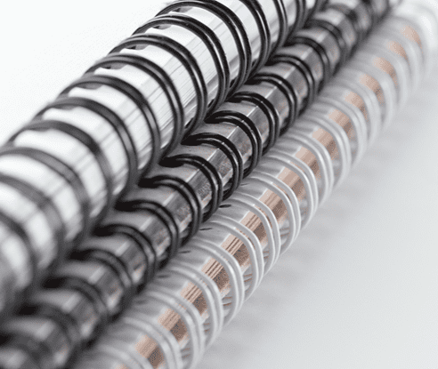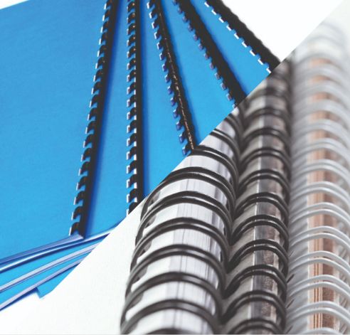 Reliures spirales plastiques ou métalliques.